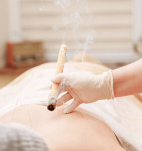 Moxibustion is an ancient traditional therapy involving the burning of dried mugwort, known as “moxa,” near specific acupuncture points on the body. This warming technique is used to stimulate and improve the flow of energy (Qi) and blood, enhancing the body’s natural healing abilities. The heat from the burning moxa penetrates deeply into the skin, promoting circulation, reducing inflammation, and helping to alleviate pain and various ailments. Moxibustion is especially valued for its therapeutic benefits in boosting immunity, relieving joint pain, and improving digestive health.